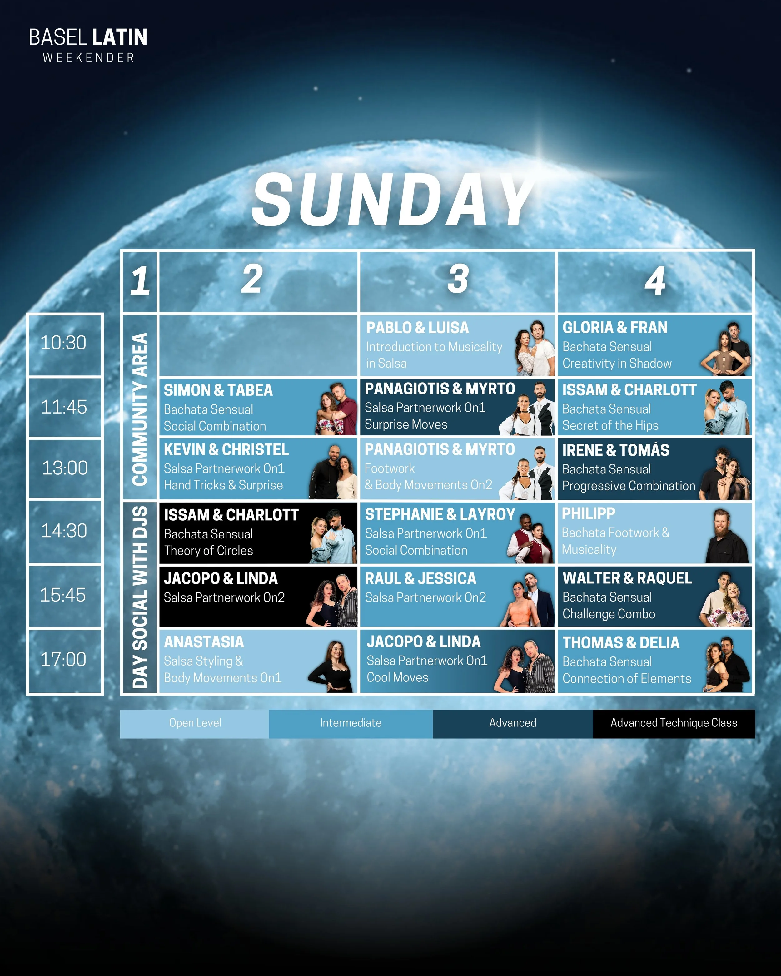 Want to get the full experience just for 1 day? Try all dances, all workshops and all socials on Sunday.